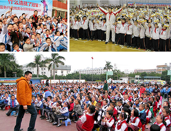 志愿者同孩子們互動