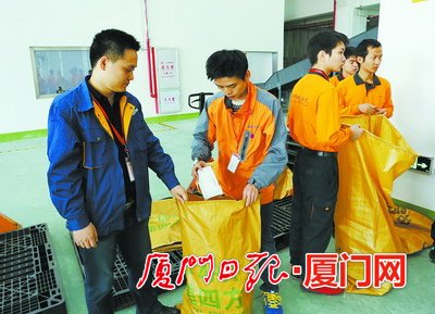 4、分類打包——快遞員工將郵件進行分類打包。